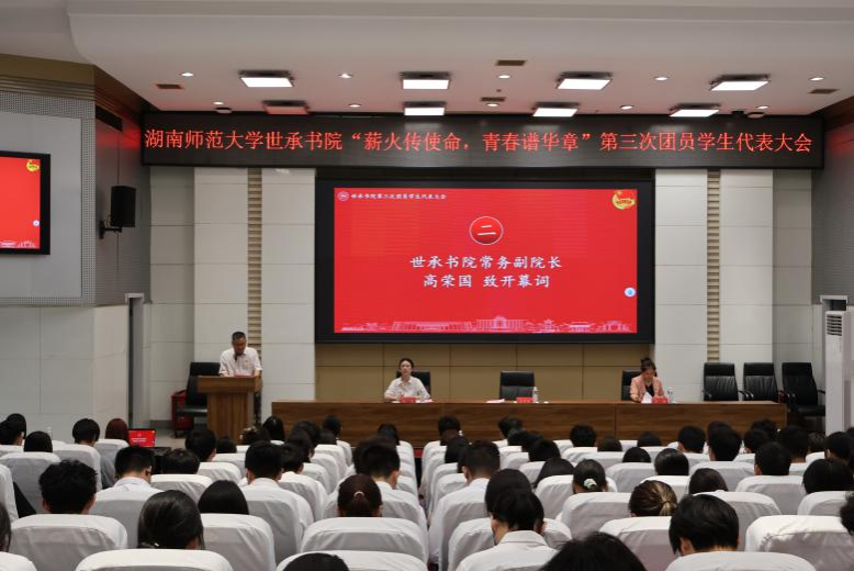 (通讯员 郭倩怡)9月29日中午,世承书院在至善讲堂举行第三次团员学生代表大会正式会议。湖南师范大学团委副书记胡滢,世承书院常务副院长兼直属党支部书记高荣国,世承书院副院长兼直属党支部副书记罗艳出席大会,会议由学生事务管理办公室主任杜涛主持。