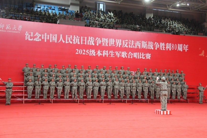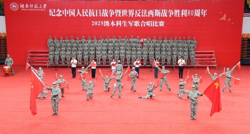(通讯员 李柯娴 蔡依纯)10月18日下午,湖南师范大学“纪念中国人民抗日战争暨世界人民反法西斯战争胜利80周年”2025级本科生军歌合唱比赛于江湾体育馆顺利举办。世承书院2025级新生军歌合唱团荣获二等奖,世承书院常务副院长高荣国、副院长罗艳与学生事务管理办公室全体辅导员登台,与合唱团共同演出。