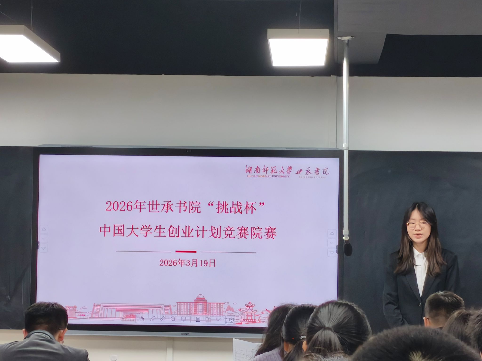(通讯员 牛竟玉 宦苏芹 王璐)为激发大学生的创新精神和实践能力,挖掘优秀项目,3月19日中午,世承书院于书院128研讨室举办2026年“挑战杯”大学生创业计划竞赛院赛,湖南师范大学理论经济学博士研究生胡含兵、生命科学学院博士李焘、世承书院副院长罗艳以及各年级辅导员担任评委。