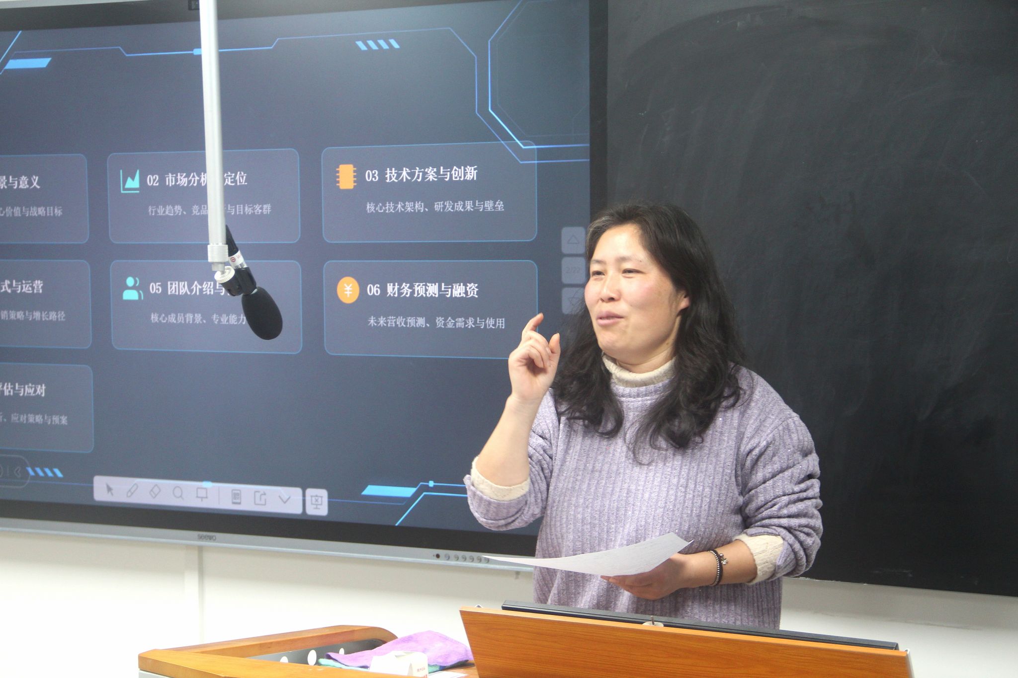 评委老师从项目命题、项目逻辑、创业可行性、团队合作等方面对各参赛队伍给予了点评。罗艳对参赛选手给予了充分肯定,并强调到要“以赛促学,以赛促创,坚持以问题为导向,突破思维定势,聚焦社会现实,发挥特长优势,深化团队合作,注重实践锤炼,培养实干精神。”