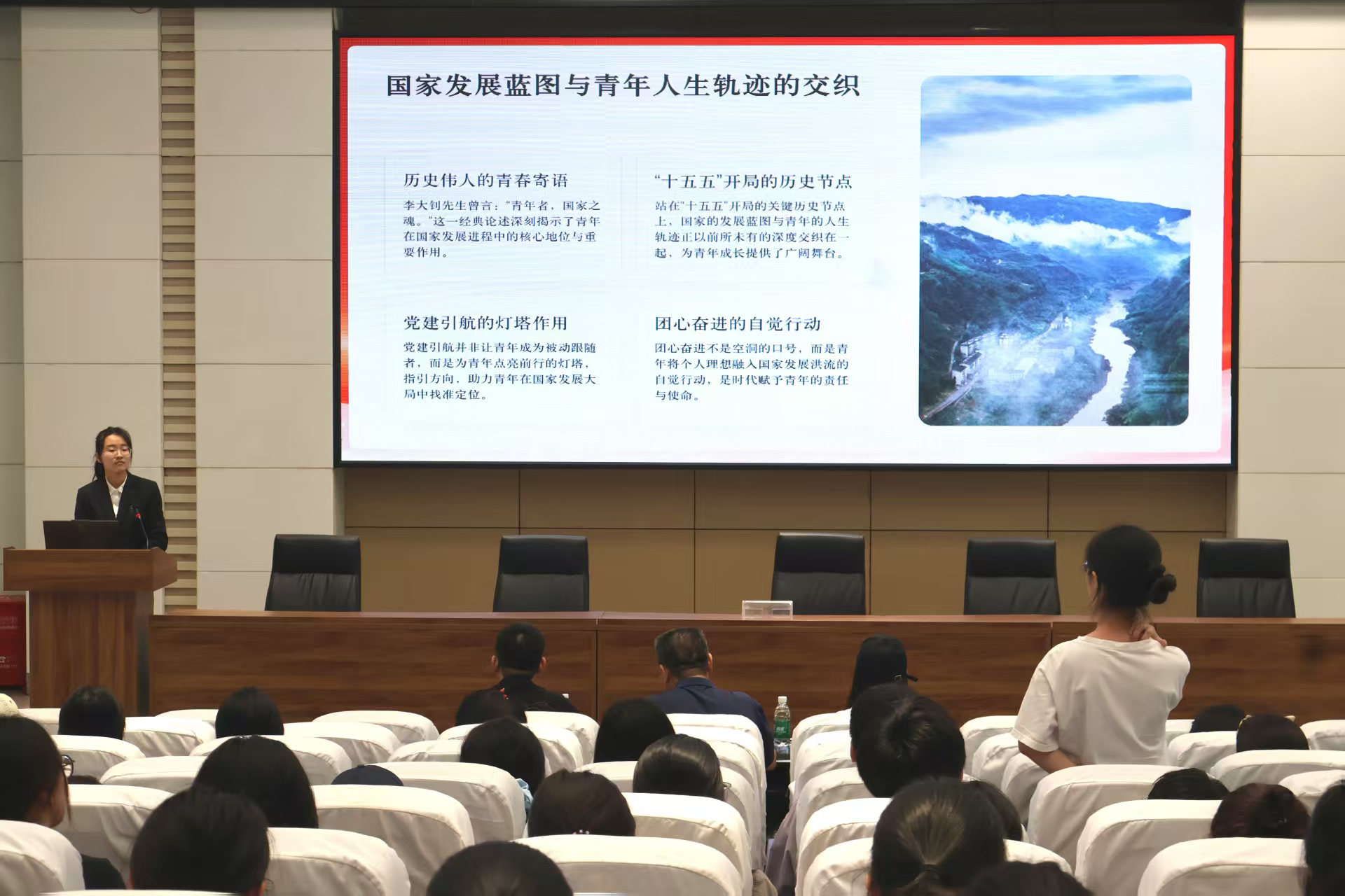 此次论坛暨明诚团校活动通过学生朋辈分享的形式,以青年视角解读宏观政策,推动了两会精神在基层团组织落地转化,为青年学子厚植家国情怀提供思想助力。