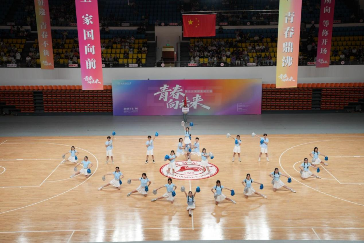 初赛阶段,队伍以整齐的队形变换、精准的动作配合及创意编排成功晋级。决赛中,团队以“时空之旅”为主线,通过音乐节奏与队形流动,串联奥运精神、抗疫精神与青年逐梦等元素。尾声环节辅导员洪锐、唐晓曼与学生同台共舞,师生默契协作的场景成为表演的温情注脚。