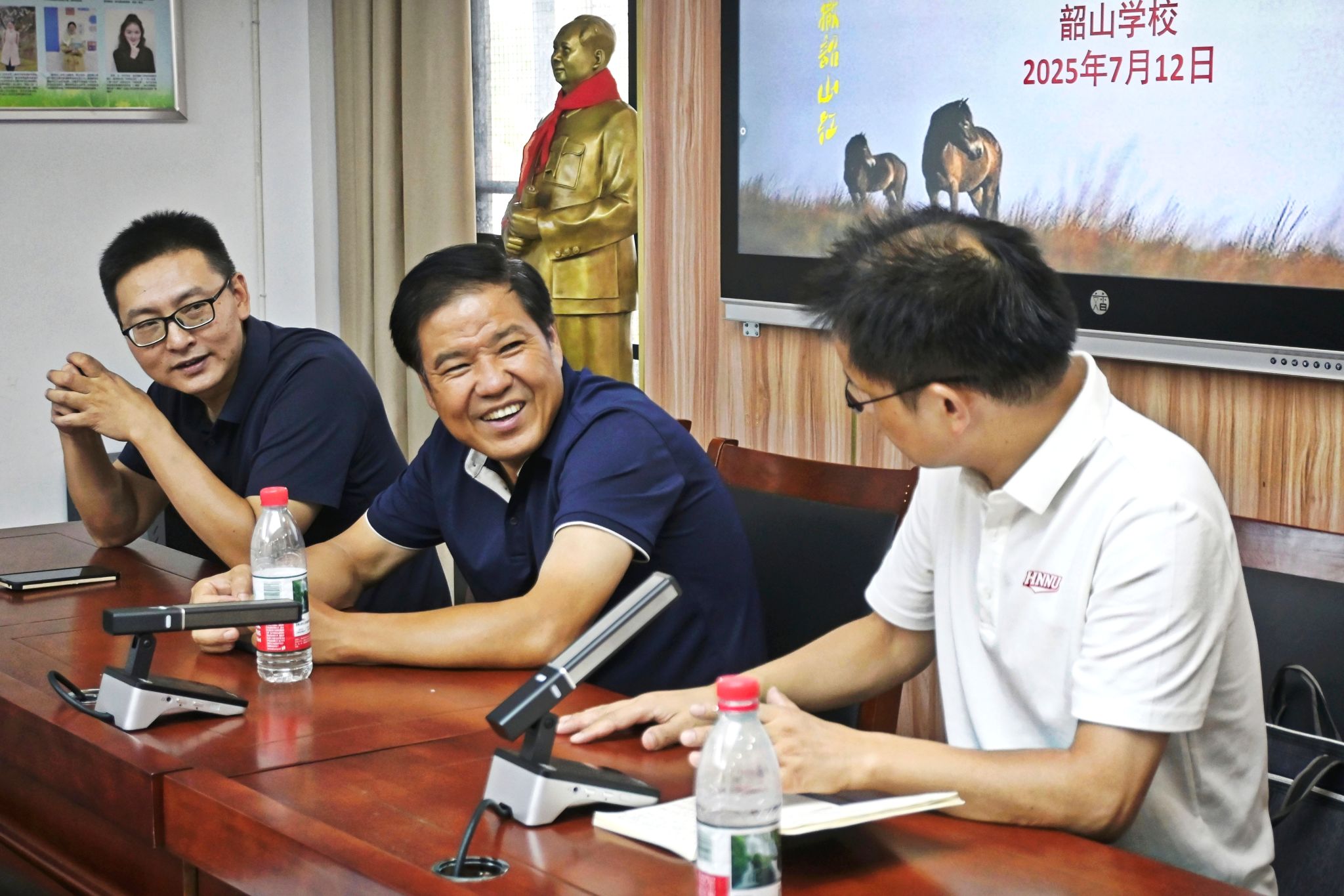 团队负责人介绍了团队的基本情况,表示团队将以“红色文化、湖湘文化、传统文化”为核心为学生开设相关课程,致力于培养学生的文学审美趣味、坚定文化自信。郭济武对团队的到来表示欢迎,鼓励团队依托跨学科优势,在韶山学校进行学科融合教学,并结合韶山红色文化,传承和发扬优良革命传统。吕双伟做总结发言,他对韶山学校的支持表示感谢,激励团队成员在实践过程中发扬师者精神,展现师大学子良好的风貌。同时他希望此次活动能够加深韶山学校与湖南师范大学的合作,在实践过程中实现共同发展。