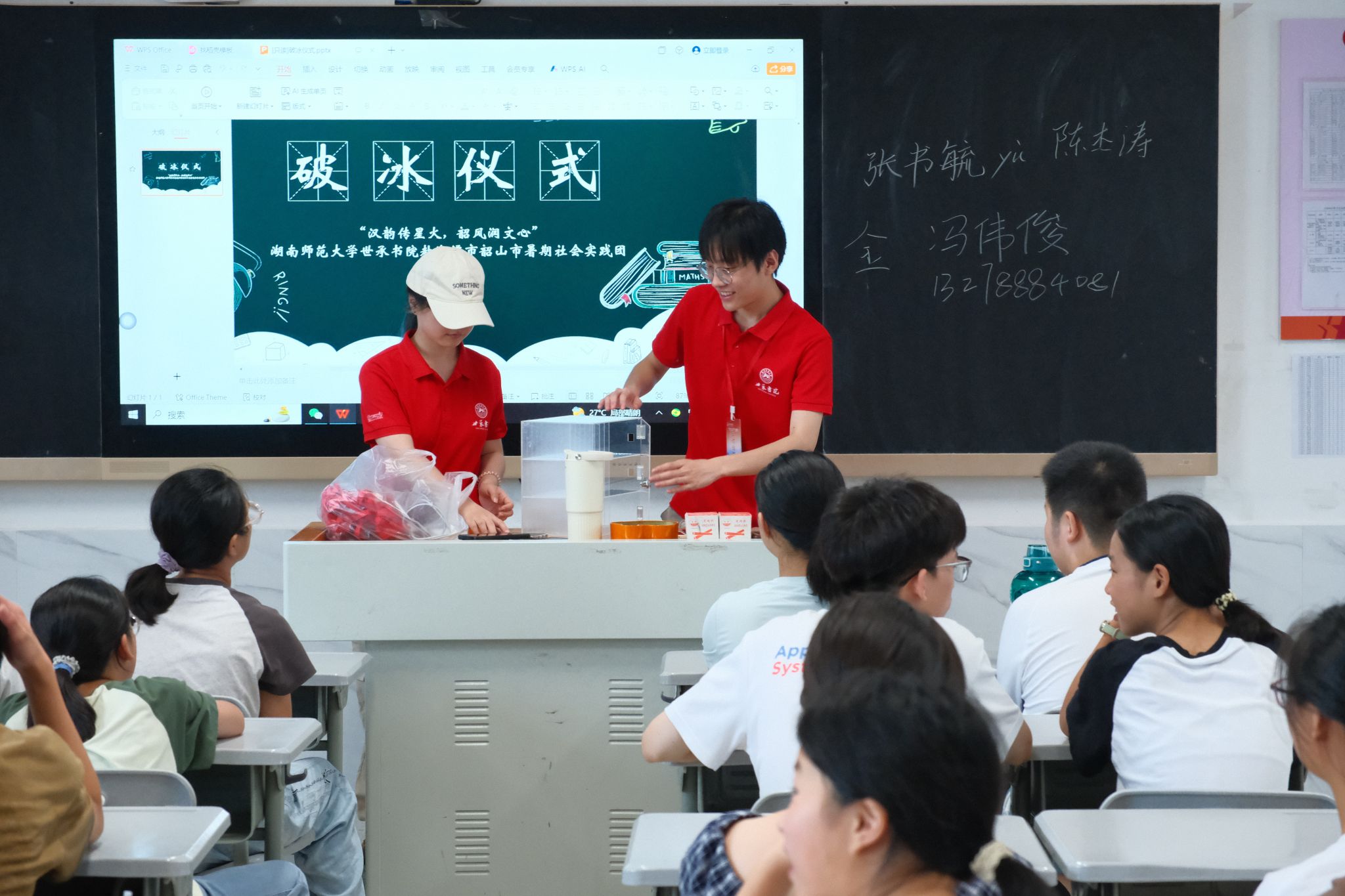 (通讯员 彭诚意 陈靖婷 文思倩 贵孟蓉)7月13日上午,湖南师范大学世承书院“汉韵传星火,韶风润文心”暑期社会实践团于韶山学校举行破冰仪式,此次活动除实践团全体成员外,共有四十名初一年级学生参与。
