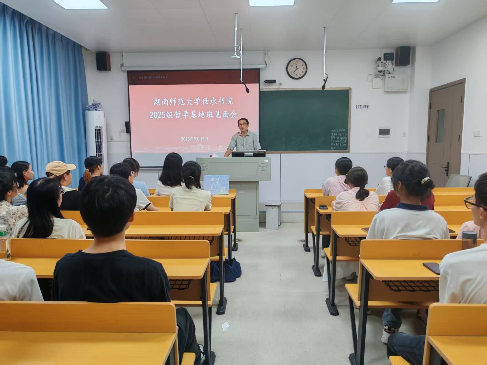 (通讯员 郑钦蕾)为促进新生相互了解,深化专业认知,9月15日晚,世承书院2025级哲学基地班于景德楼中栋113教室举行新生交流会暨班导师见面会。2025级哲学基地班班导师肖平出席会议,会议由哲学基地班班指导刘嘉慧、于波主持。