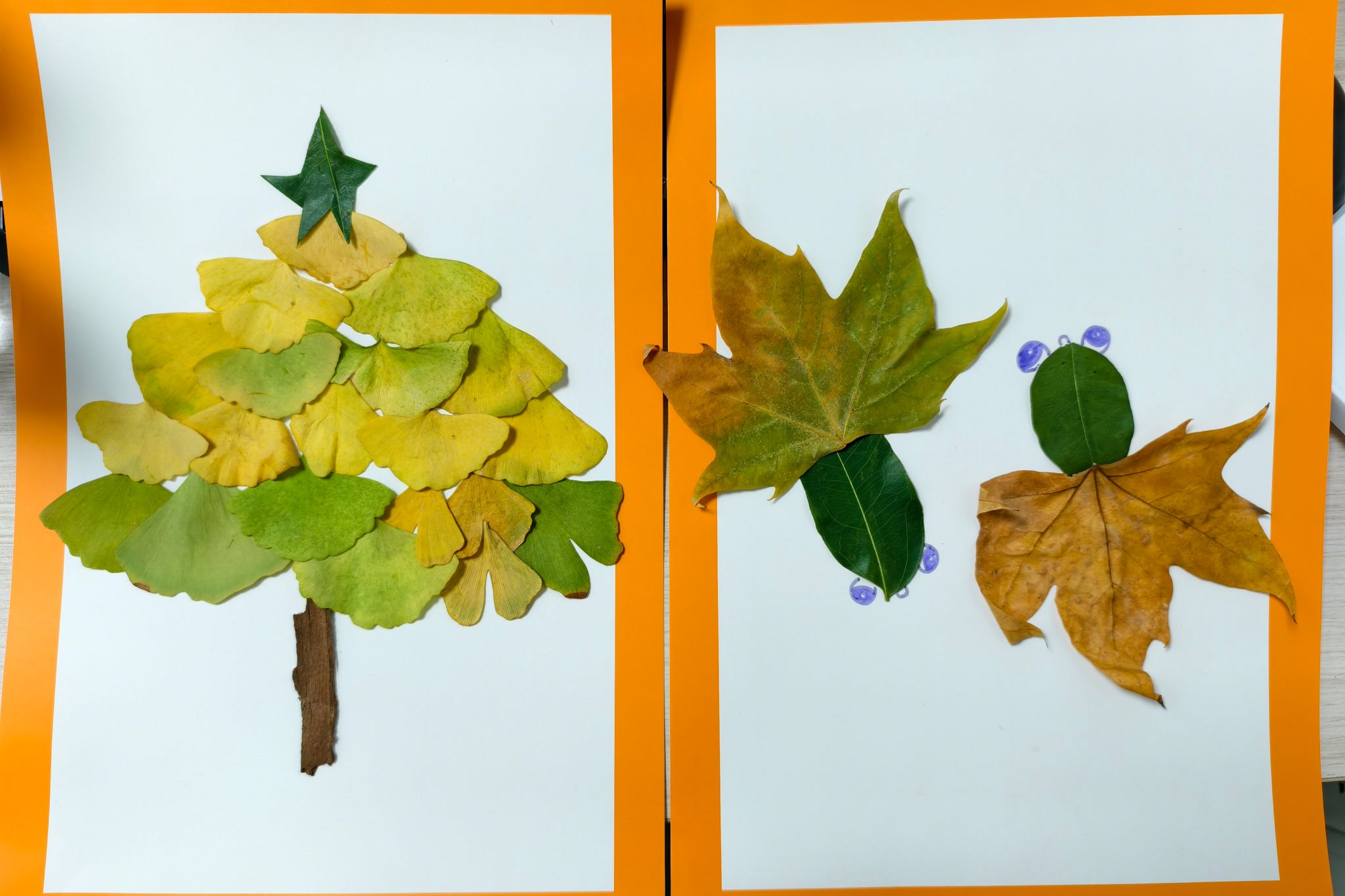 活动伊始,志愿者通过图文展示与互动讲解,向孩子们介绍小雪节气的物候特征、民间习俗,并带领学习相关儿歌,现场互动积极。随后的“落叶画工坊”环节,孩子们将节气元素融入创作,在志愿者的协助下,用形状各异的落叶拼贴出金鱼、大树、太阳等充满童趣的作品。作品展示阶段,孩子们自豪地展示的自己专属画作,现场充满欢声笑语。