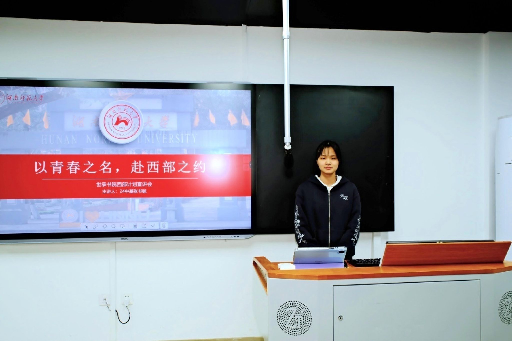 (通讯员 张金超 张书毓)为深入贯彻落实大学生志愿服务西部计划相关精神,进一步引导和鼓励高校毕业生主动融入国家发展大局,4月21日晚,世承书院团委青年志愿者工作部于128研讨室成功举办“以青春之名,赴西部之约”西部计划主题宣讲会。此次宣讲会由2024级锺书班刘芮主持,2024级中文基地班张书毓主讲。